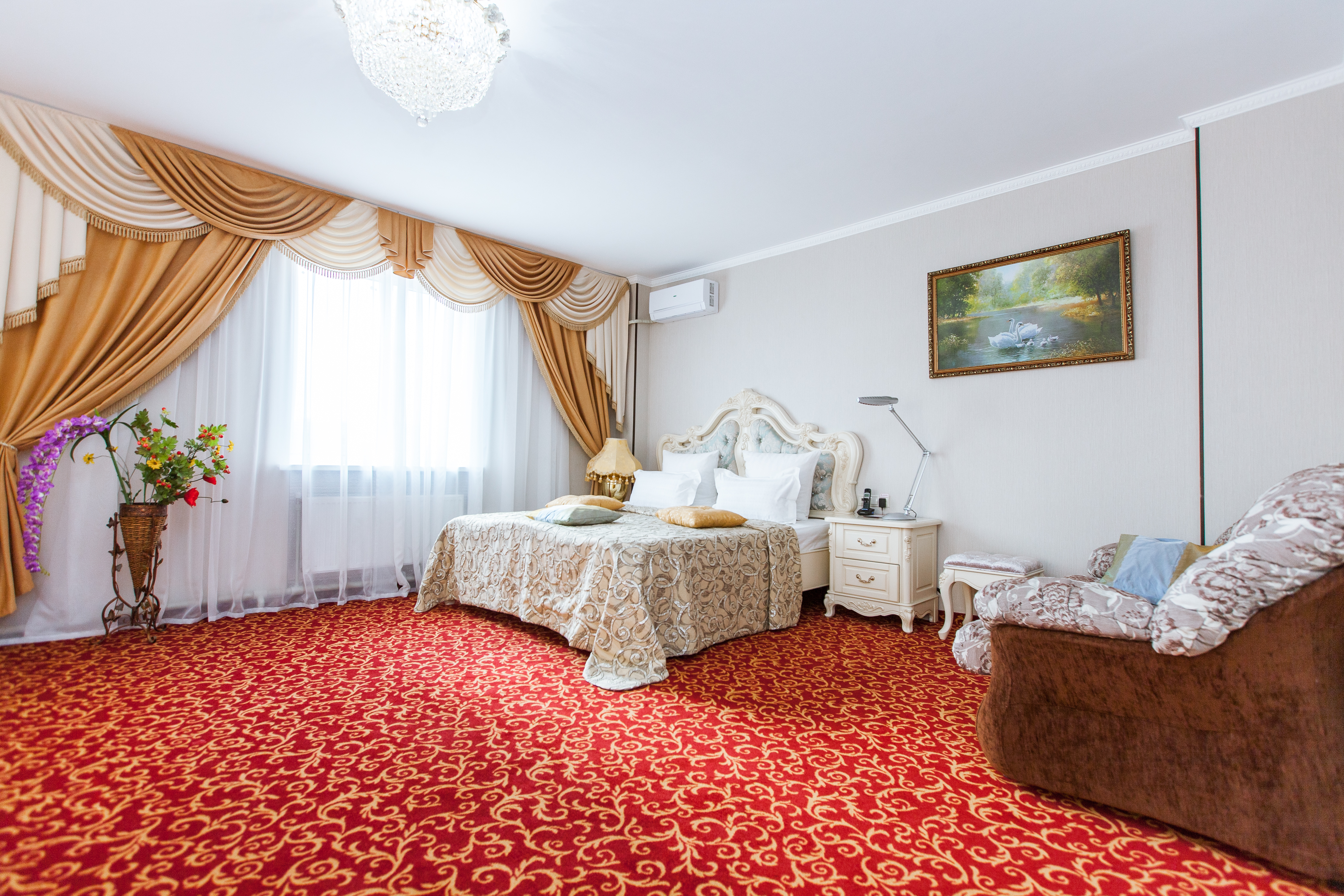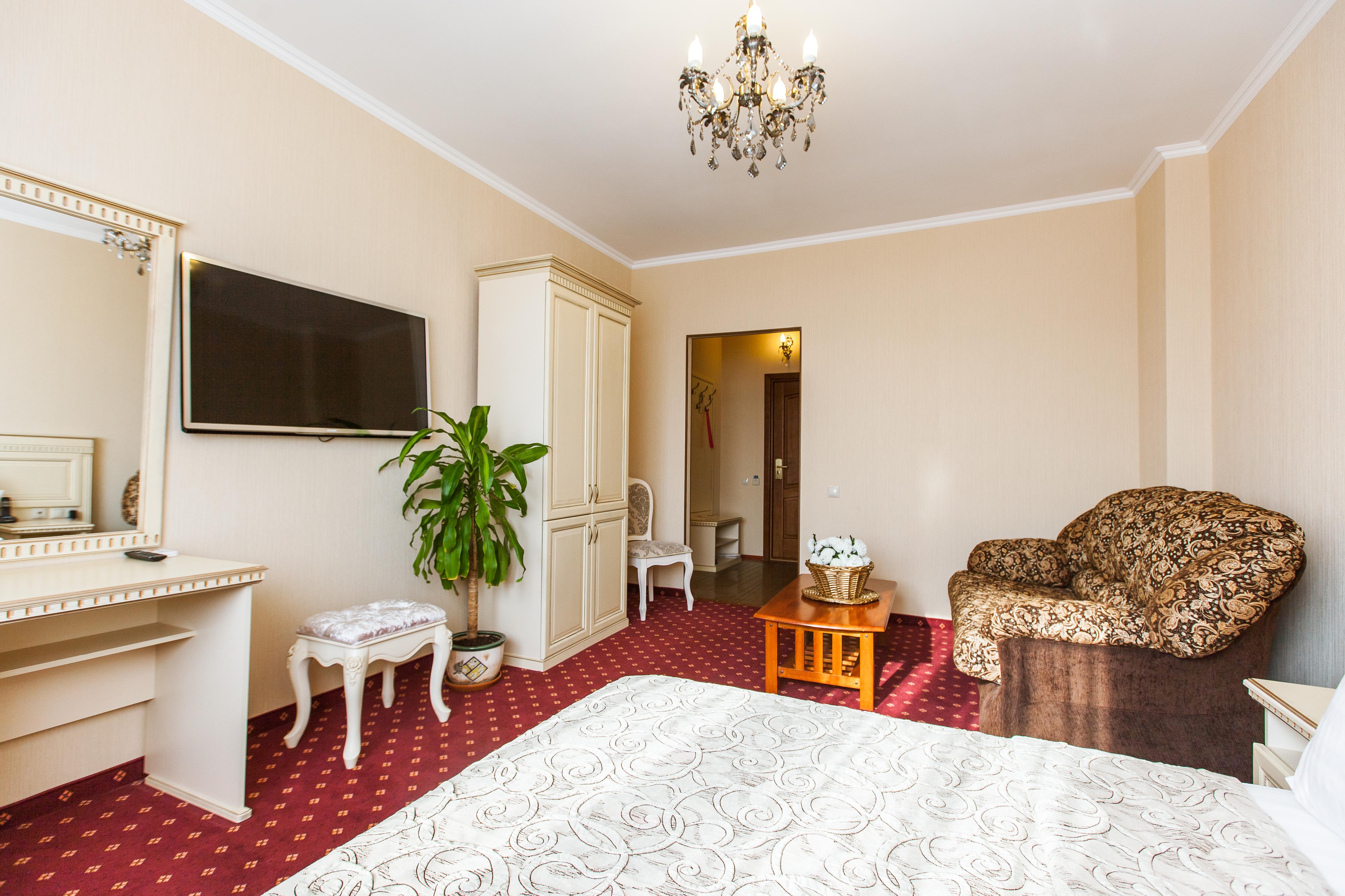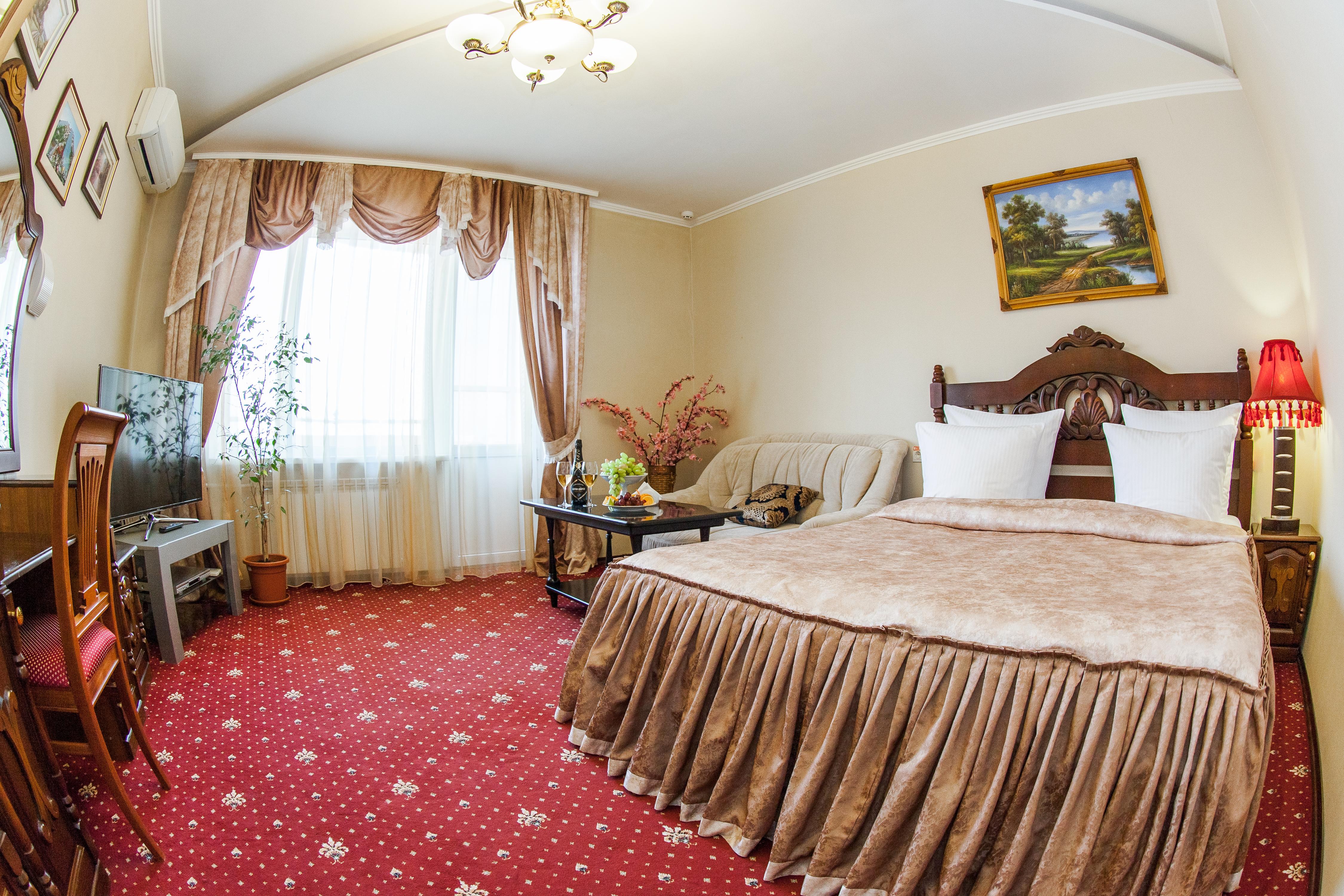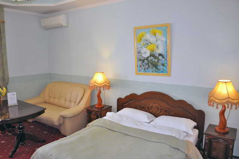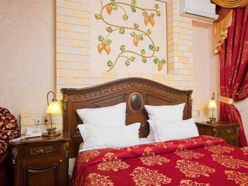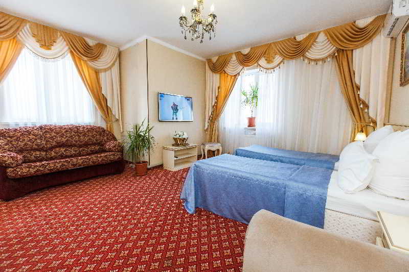 Located in the centre of Krasnodar, the cathedral is about 3 km from the hotel and guests can visit the Museum of Military Hardware only 4 km away. The city centre and Felitsin's Historical and Archaeological Museum Reserve are both 15 minutes' drive from the hotel, while Pamyati Geroev is a 7-minute drive away. This city hotel is renowned for its comfort and warmth. Its interior and exterior appearance is a bold combination of the classical minimalism and modernist styles. The business hotel offers 60 guest rooms and facilities include parking, Internet access, and a cafe and restaurant. Two conference rooms are offered by the hotel for guests to hold conferences, meetings, training sessions and other public events. Further facilities at the air-conditioned hotel include a lobby with a 24-hour check-out service, a hotel safe, cloakroom, lift access, and both room and laundry services. No matter what room category a guest chooses, they will find everything necessary for a comfortable stay. Each room features an en suite bathroom with a shower, bathtub, hairdryer, bathrobe, slippers and bathroom amenities. The utmost in comfort and convenience is ensured by a king-size/queen-size bed or 2 separate beds, and individually regulated air conditioning and central heating. Other in-room amenities include a direct dial telephone, DVD player, satellite TV, a minibar, tea and coffee making facilities and an ironing set - all the things guests need to help to remove the stress and tiredness of the day. Guests can relax in the sauna after a hard day's work. A breakfast buffet is served each morning and á la carte options are available for lunch and dinner.