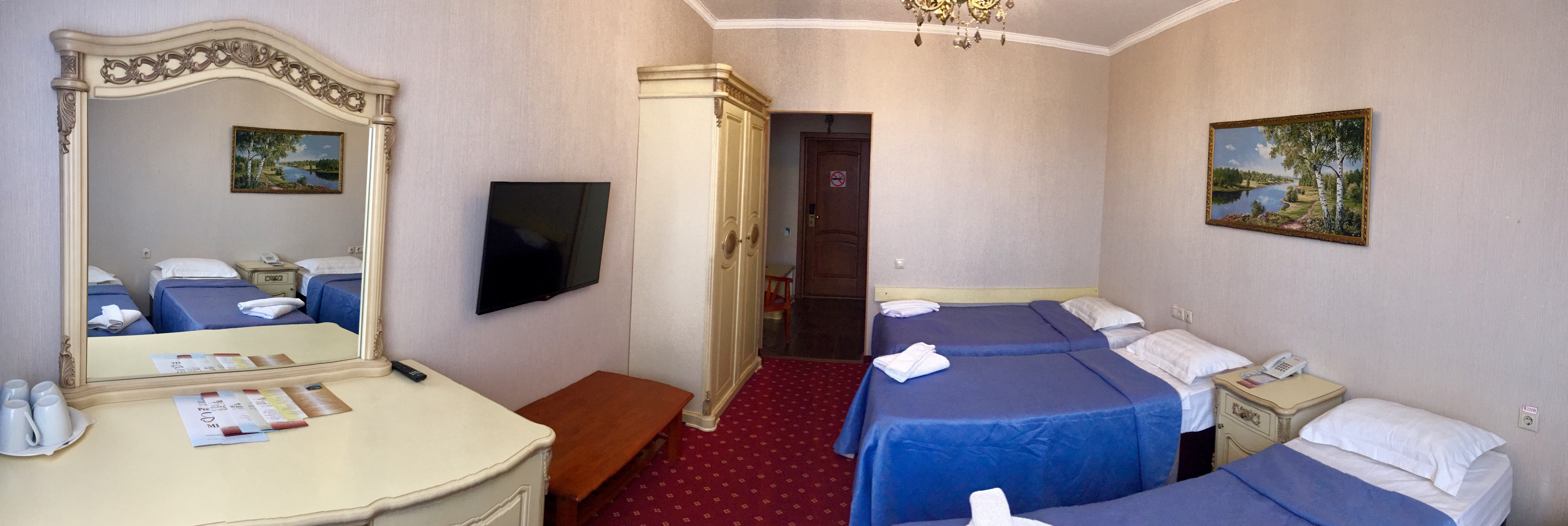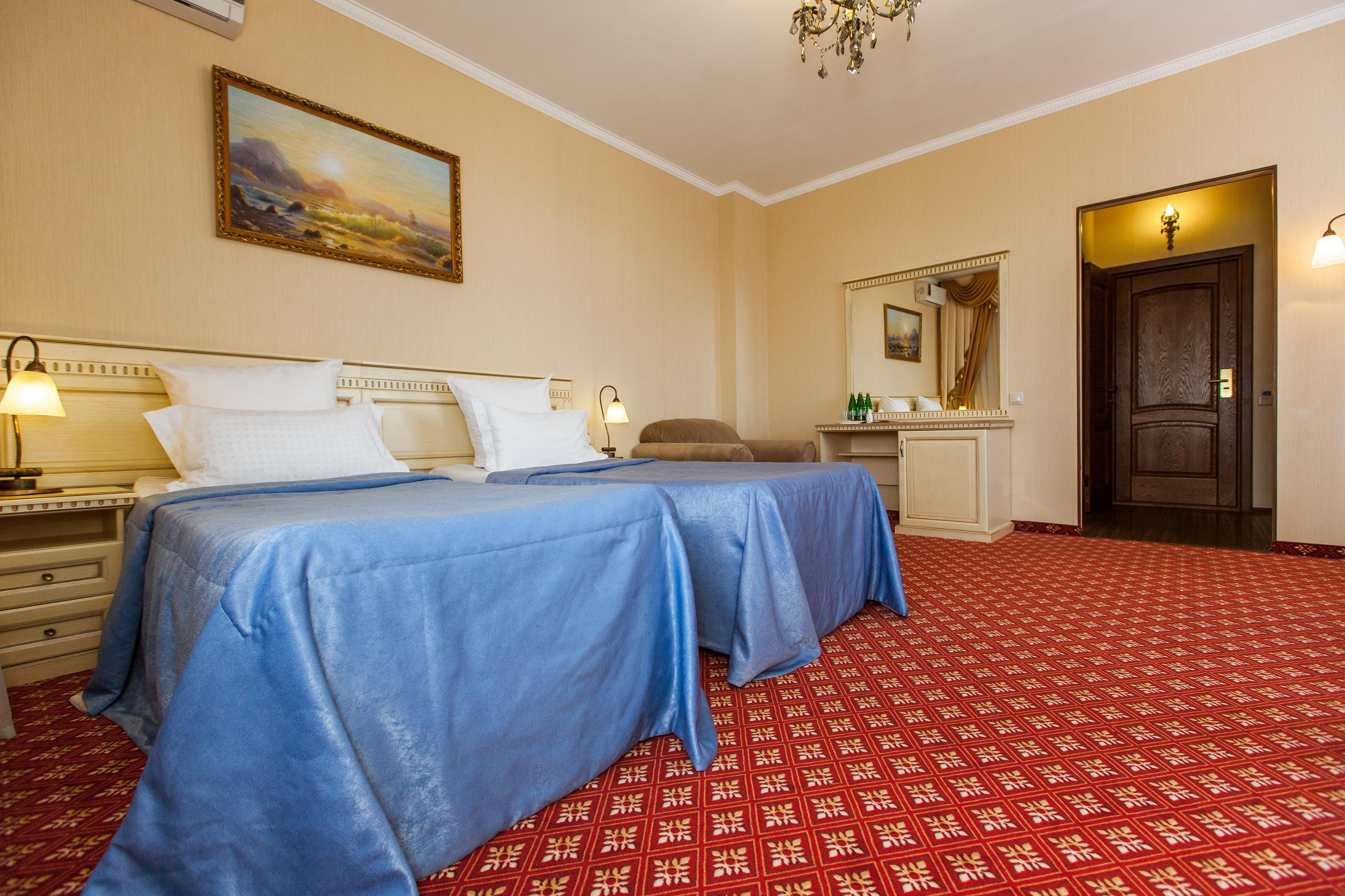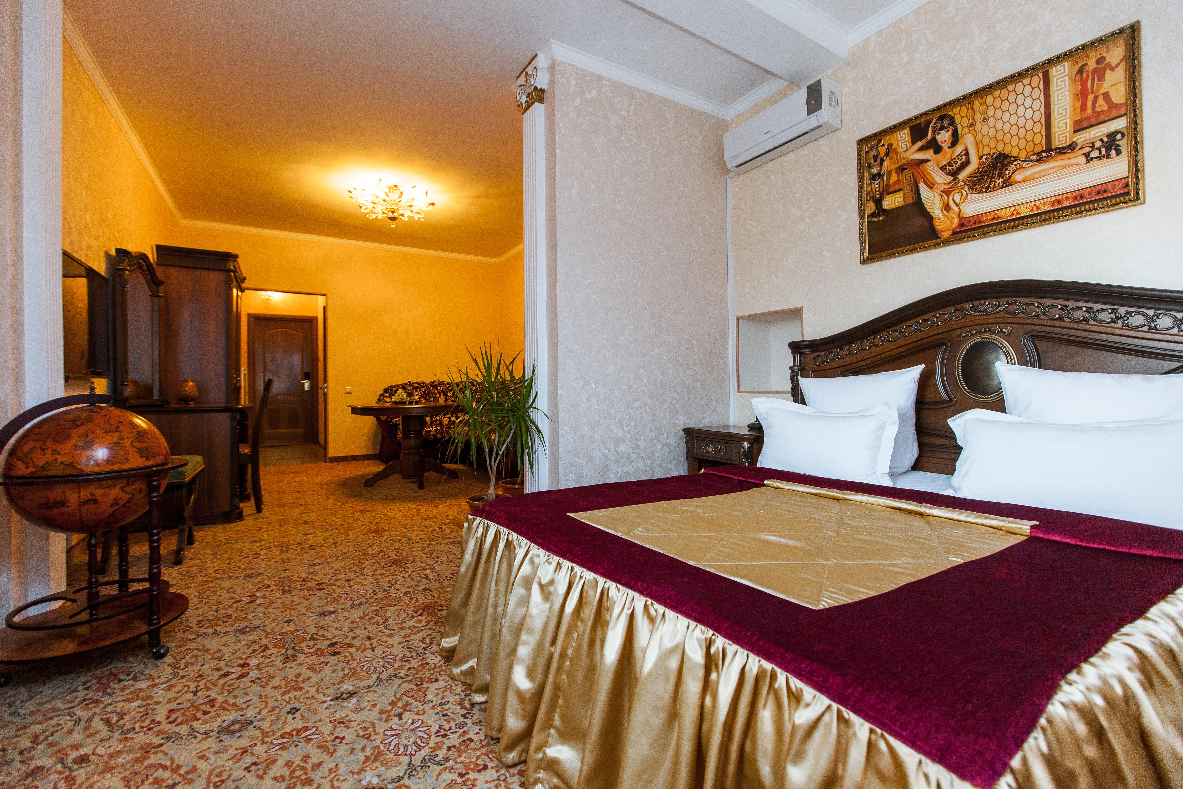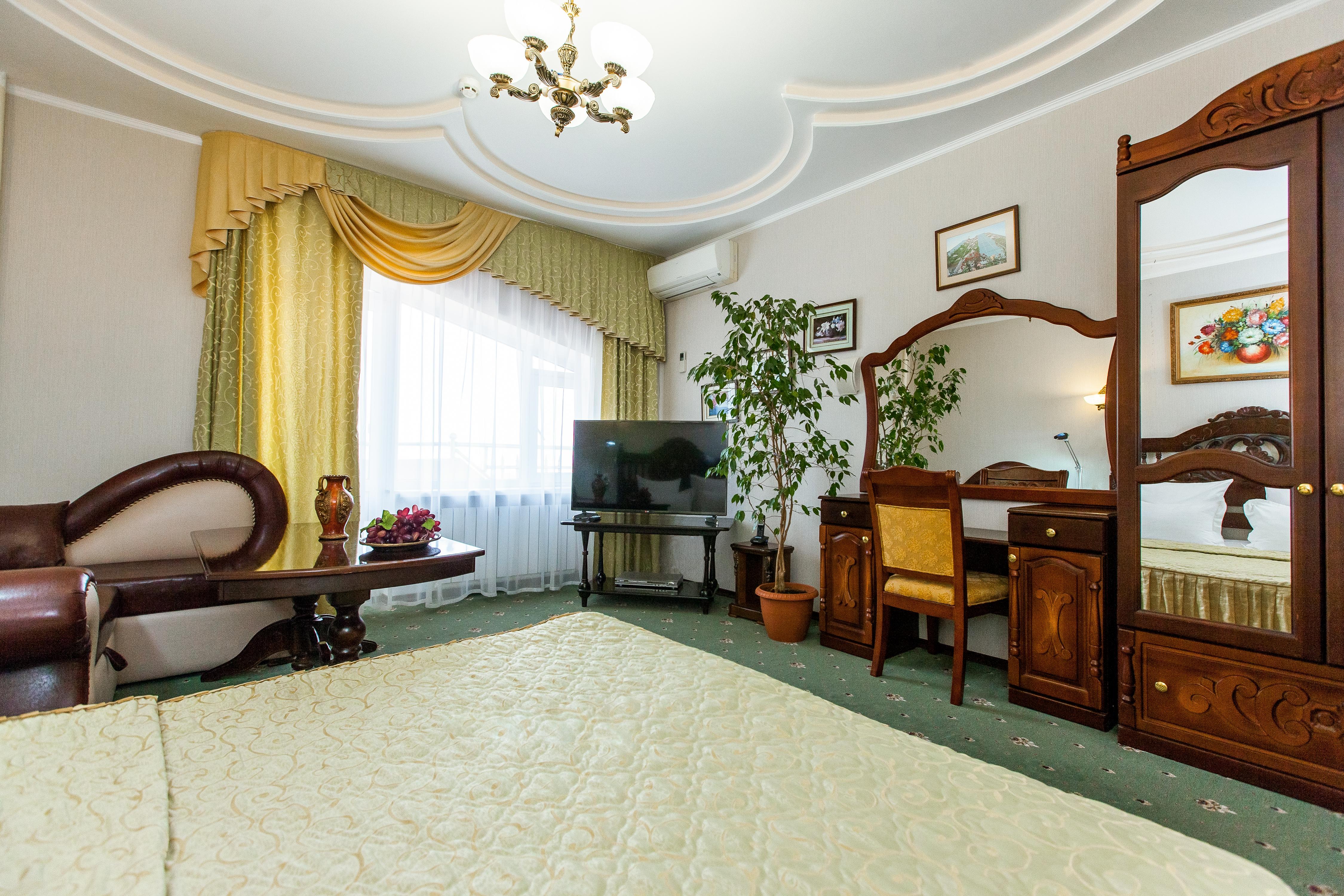 Located in the centre of Krasnodar, the cathedral is about 3 km from the hotel and guests can visit the Museum of Military Hardware only 4 km away. The city centre and Felitsin's Historical and Archaeological Museum Reserve are both 15 minutes' drive from the hotel, while Pamyati Geroev is a 7-minute drive away. This city hotel is renowned for its comfort and warmth. Its interior and exterior appearance is a bold combination of the classical minimalism and modernist styles. The business hotel offers 60 guest rooms and facilities include parking, Internet access, and a cafe and restaurant. Two conference rooms are offered by the hotel for guests to hold conferences, meetings, training sessions and other public events. Further facilities at the air-conditioned hotel include a lobby with a 24-hour check-out service, a hotel safe, cloakroom, lift access, and both room and laundry services. No matter what room category a guest chooses, they will find everything necessary for a comfortable stay. Each room features an en suite bathroom with a shower, bathtub, hairdryer, bathrobe, slippers and bathroom amenities. The utmost in comfort and convenience is ensured by a king-size/queen-size bed or 2 separate beds, and individually regulated air conditioning and central heating. Other in-room amenities include a direct dial telephone, DVD player, satellite TV, a minibar, tea and coffee making facilities and an ironing set - all the things guests need to help to remove the stress and tiredness of the day. Guests can relax in the sauna after a hard day's work. A breakfast buffet is served each morning and á la carte options are available for lunch and dinner.